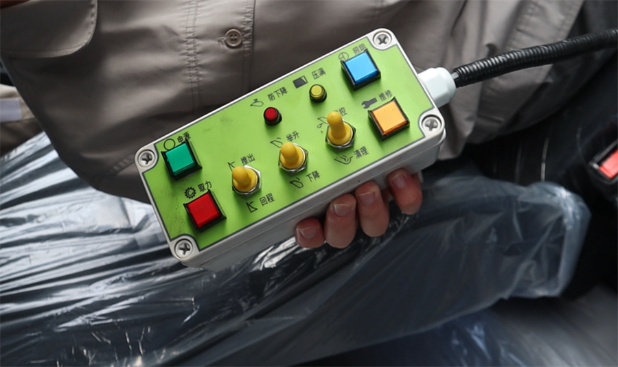 車輛兩側均設置緊急按鈕,配備高強度安全撐桿和防下降、推板感應裝置,再次強化了誤操作的概念,在駕駛室也可遙控操作,安全便捷兩手抓!